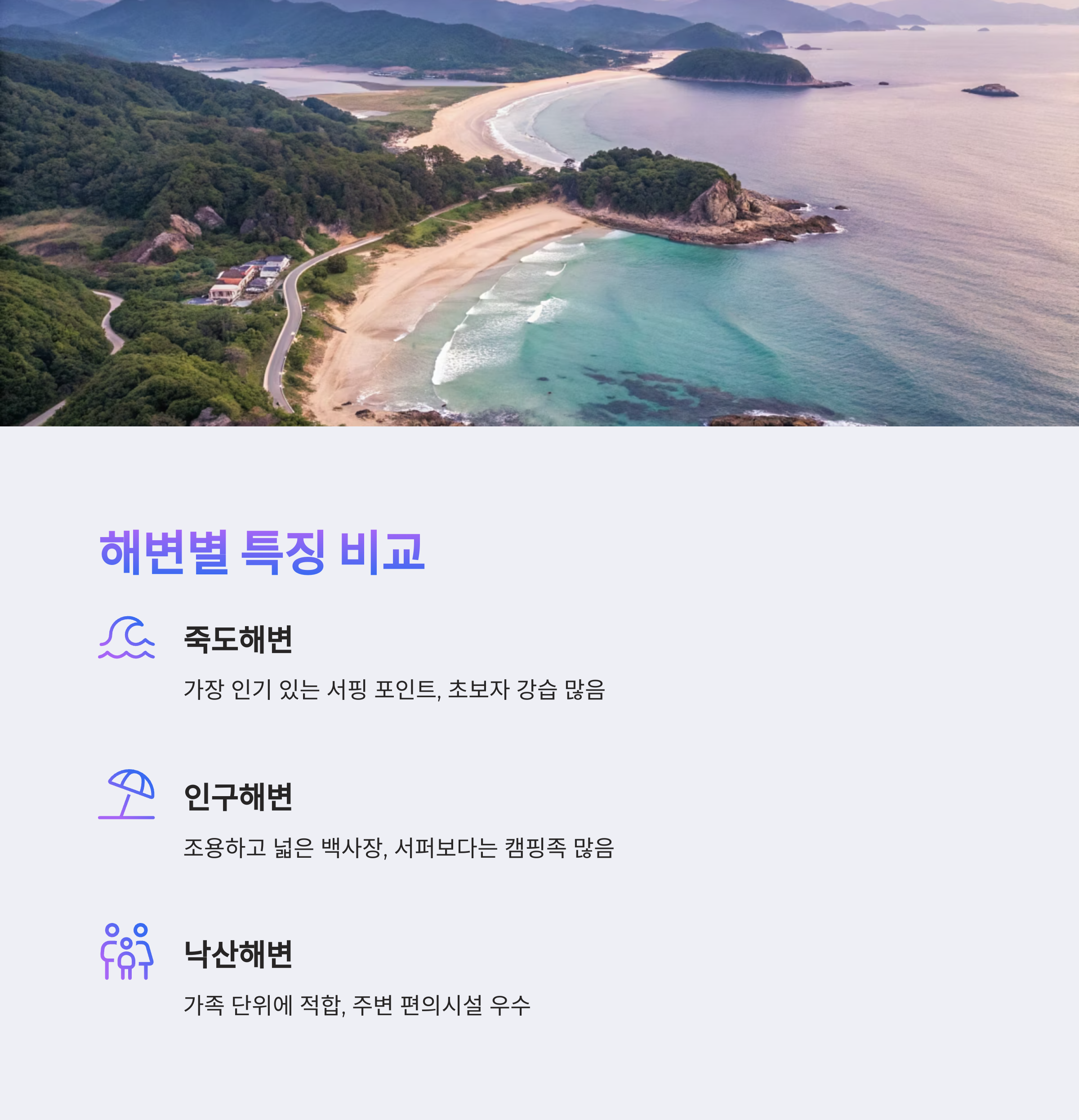 주요 해변별 특징 비교