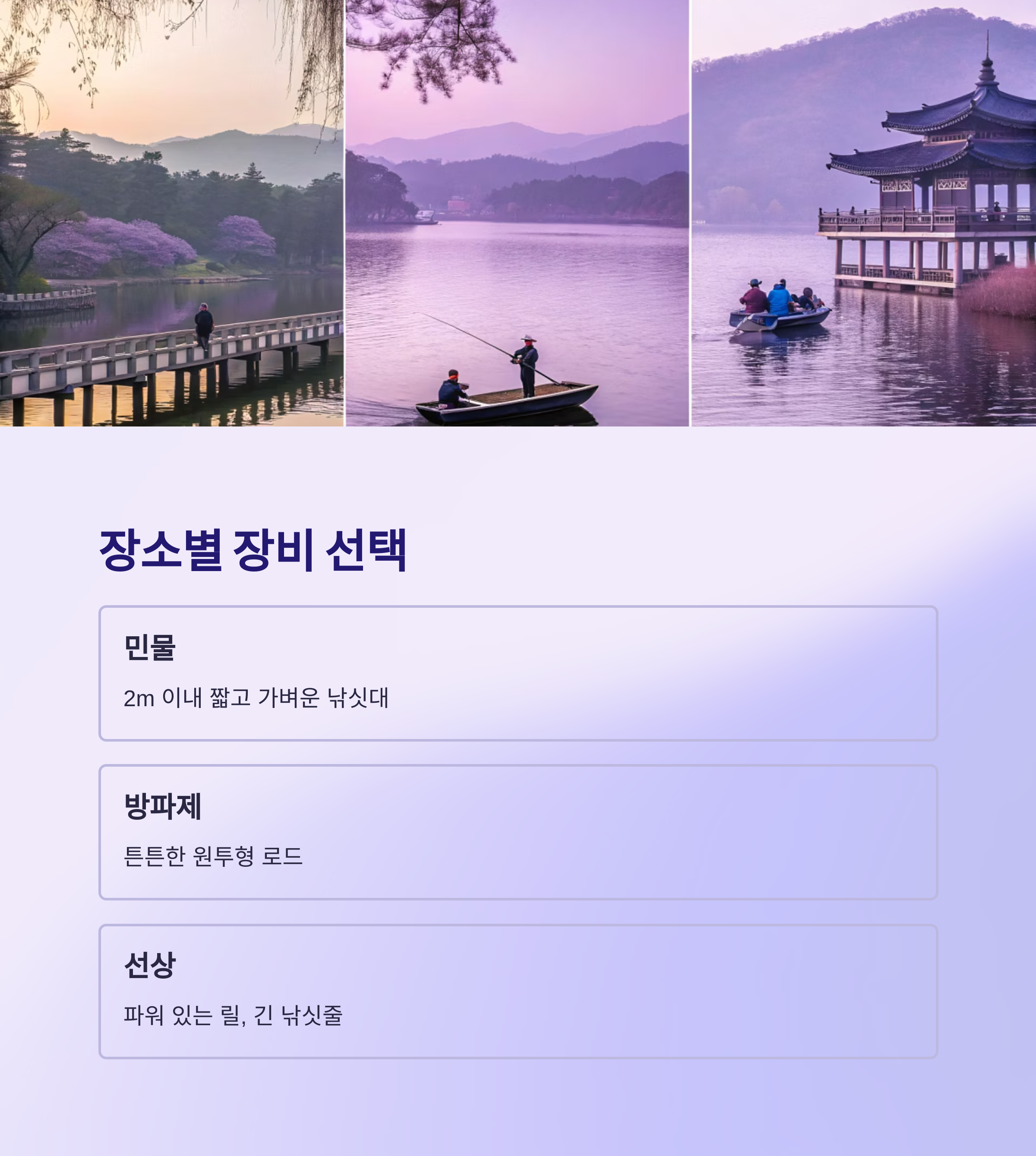 낚시는 어디서 하느냐에 따라 장비 선택이 크게 달라