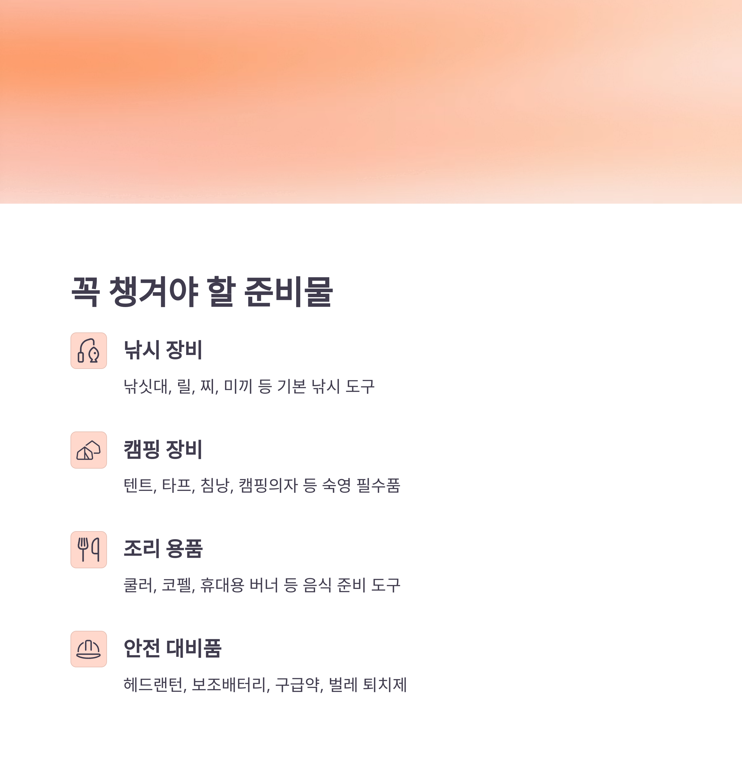캠낚은 장비가 많아 보이지만, 차근차근 체크리스트를 따라 준비하면 어렵지 않아요. 특히 낚시와 숙영의 균형을 고려한 짐 구성이 중요하답니다!