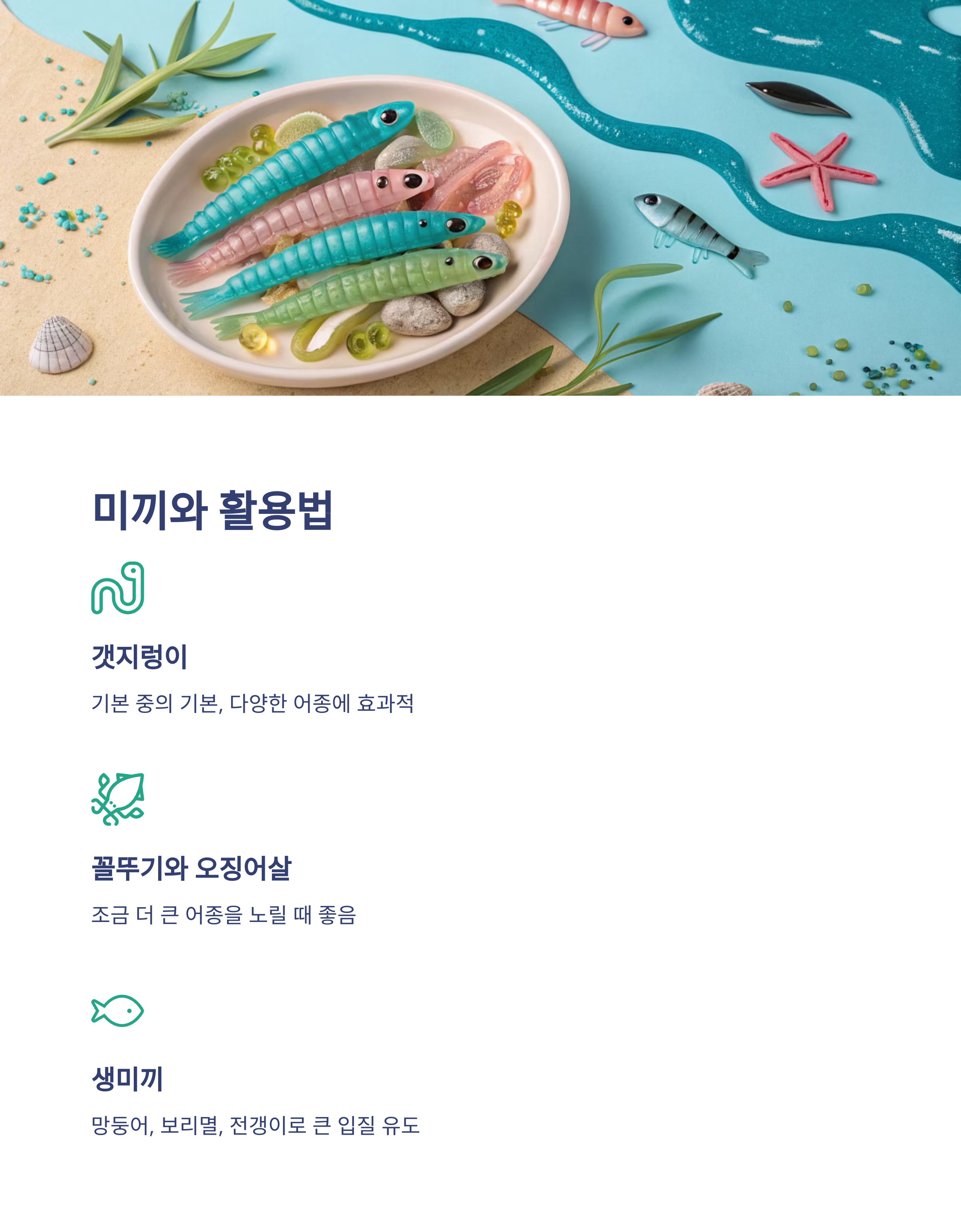 - 꼴뚜기와 오징어살: 조금 더 큰 어종을 노릴 때 좋아요.