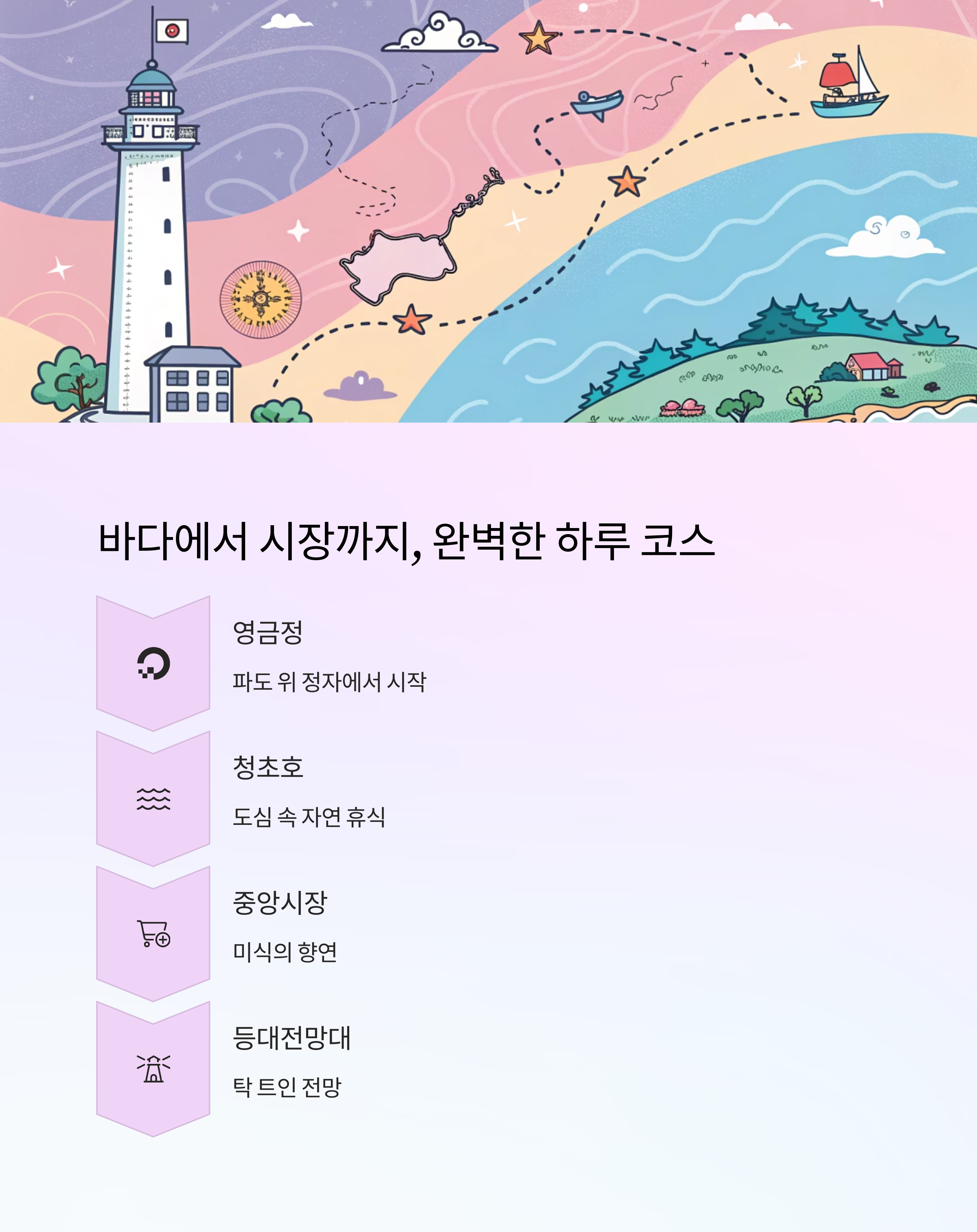속초의 푸른 바다와 전통시장 정취가 어우러지는 여정을 따라가면