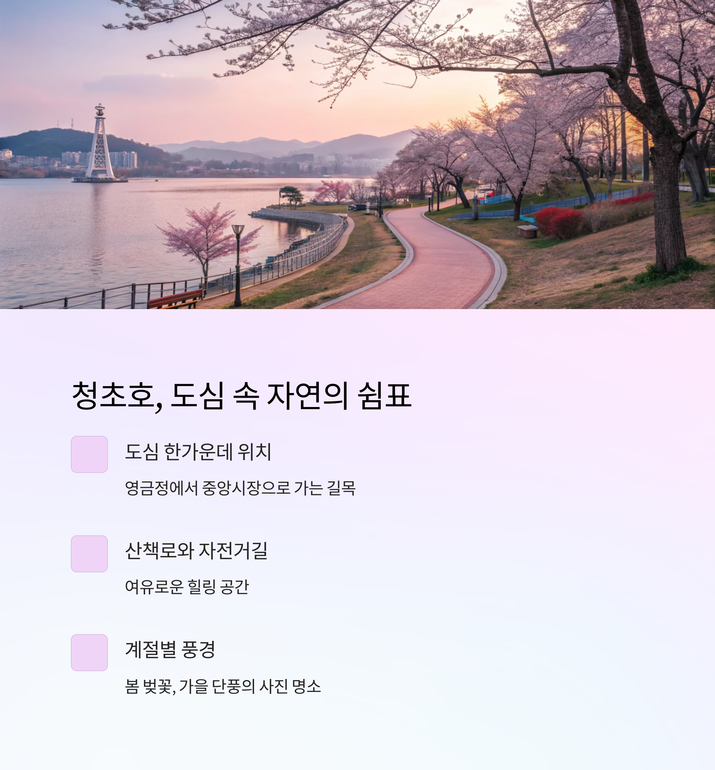 청초호라는 속초의 평온한 호수가 기다리고 있습니다