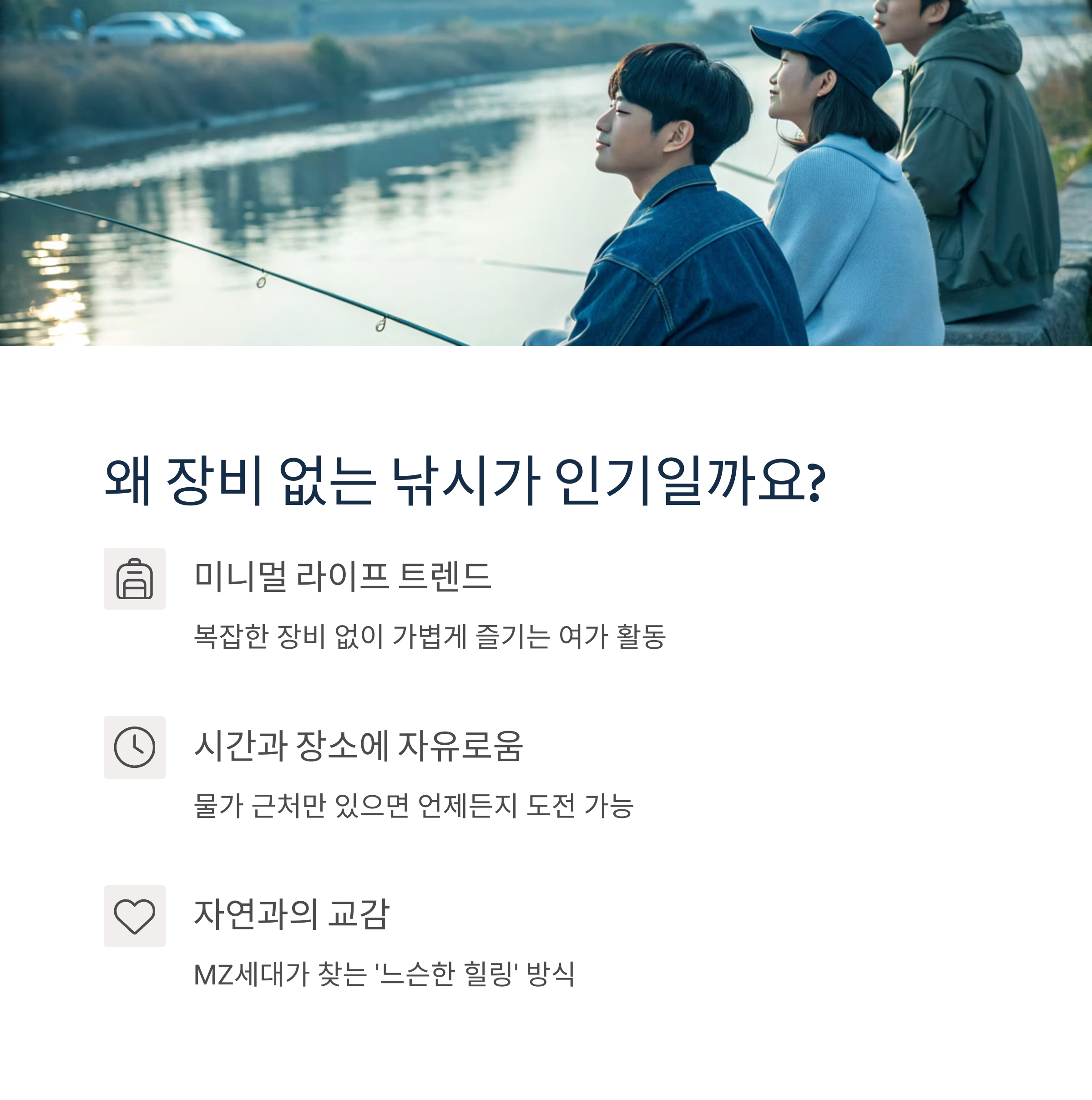 특히 MZ세대 사이에서는 '느슨한 힐링' 방식으로도 인기를 끌고 있어요. 시간과 장소에 얽매이지 않고 물가 근처만 있으면 도전 가능한 자유로움이 가장 큰 매력이에요.