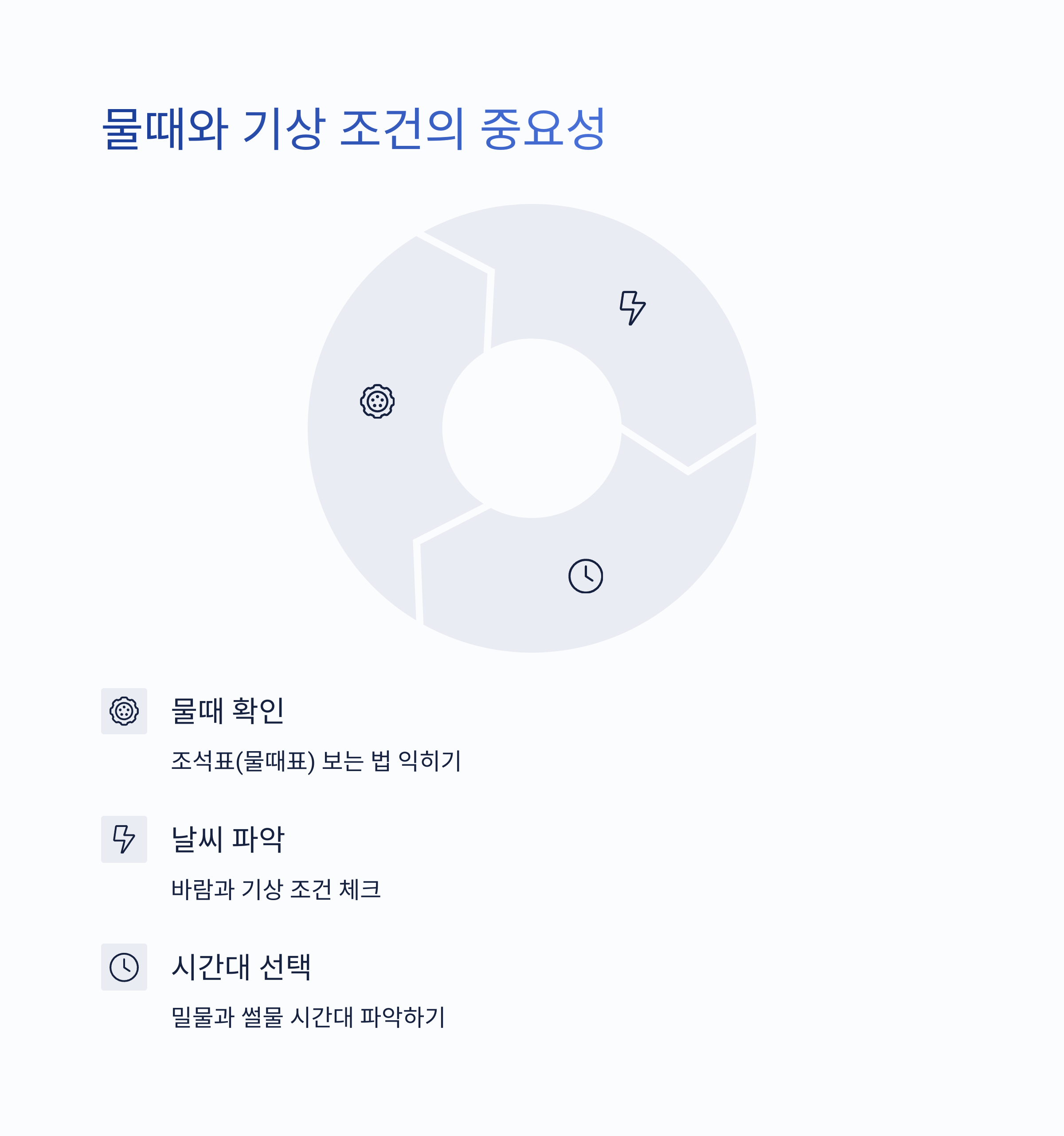 | 필수 앱/도구 | 물때표 앱, 날씨 확인 앱 |