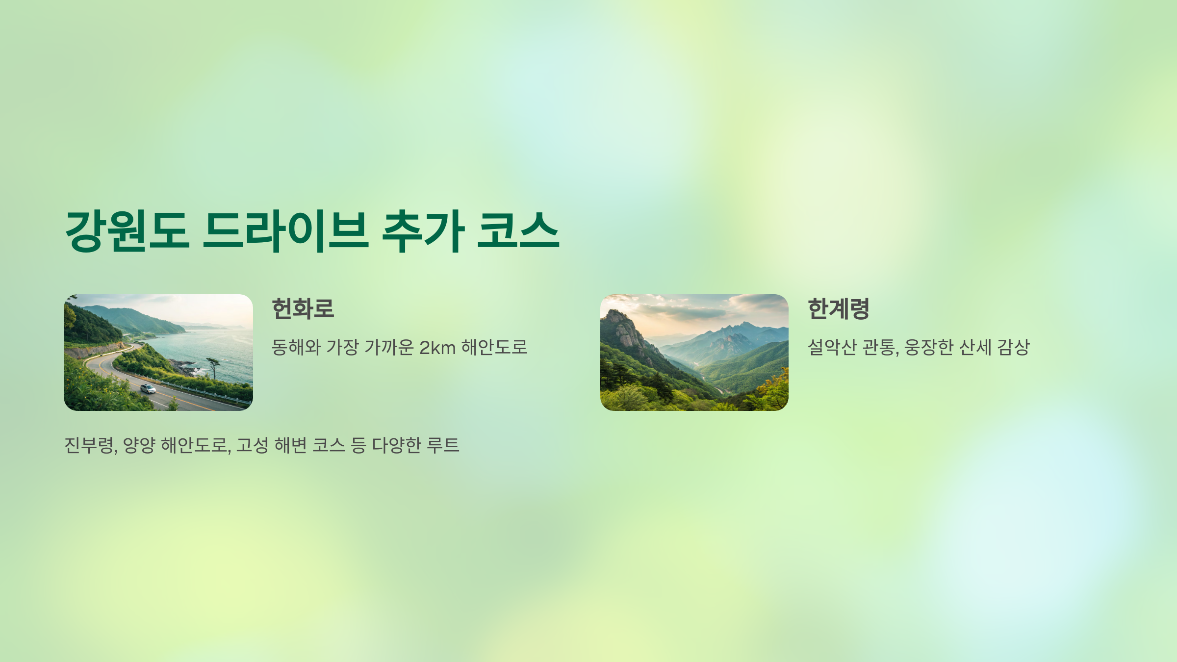 강원도 드라이브 마니아를 위한 추가 코스 추천
