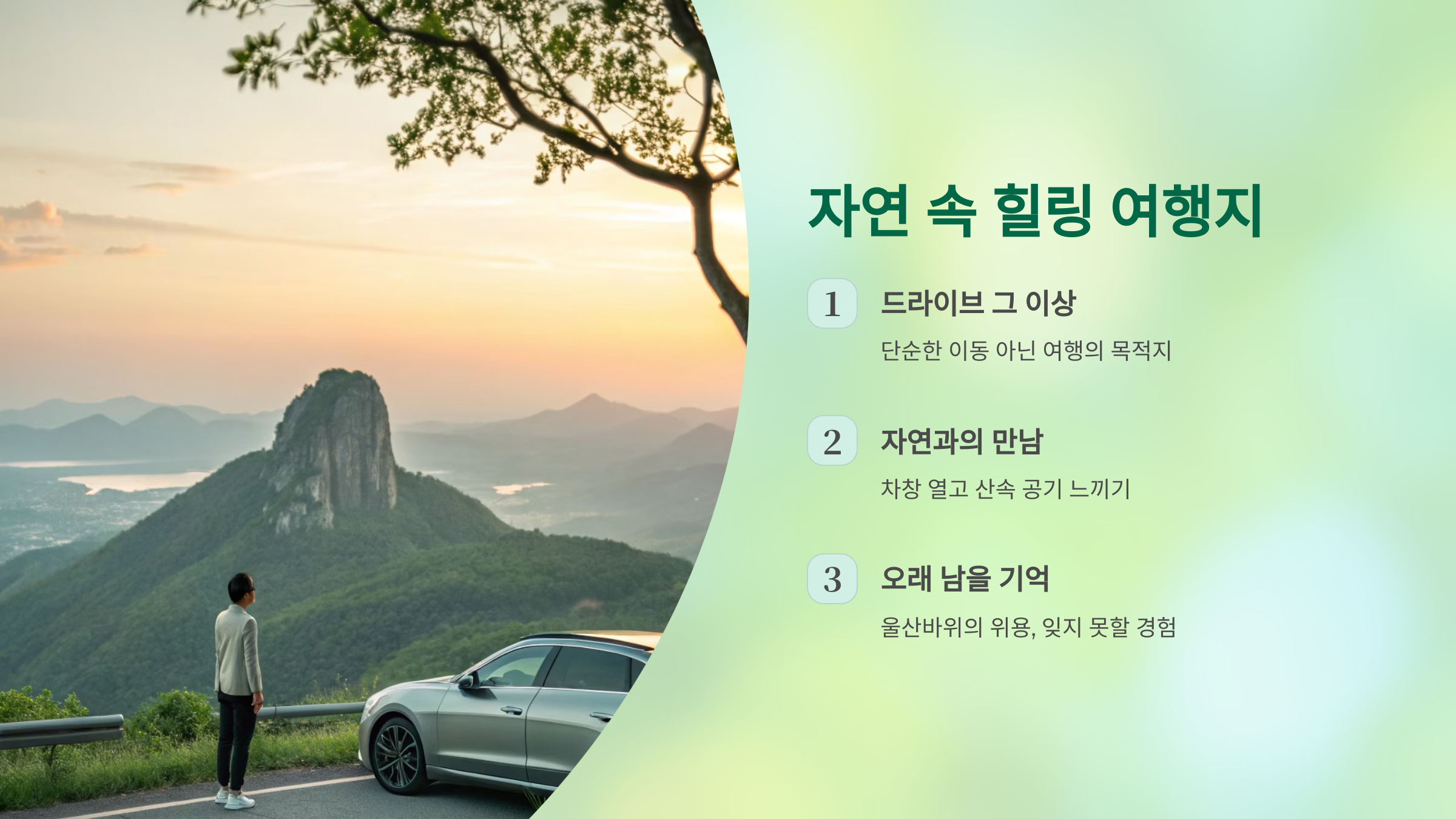 시원한 산바람이 어우러져 최적의 드라이브 환경을 제공합니다.